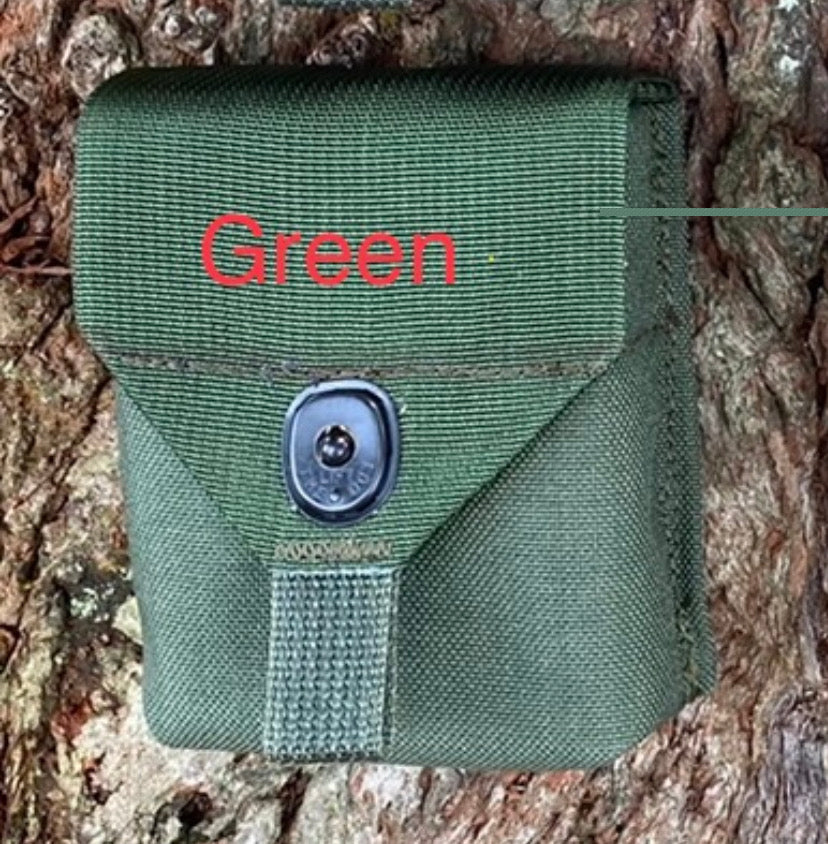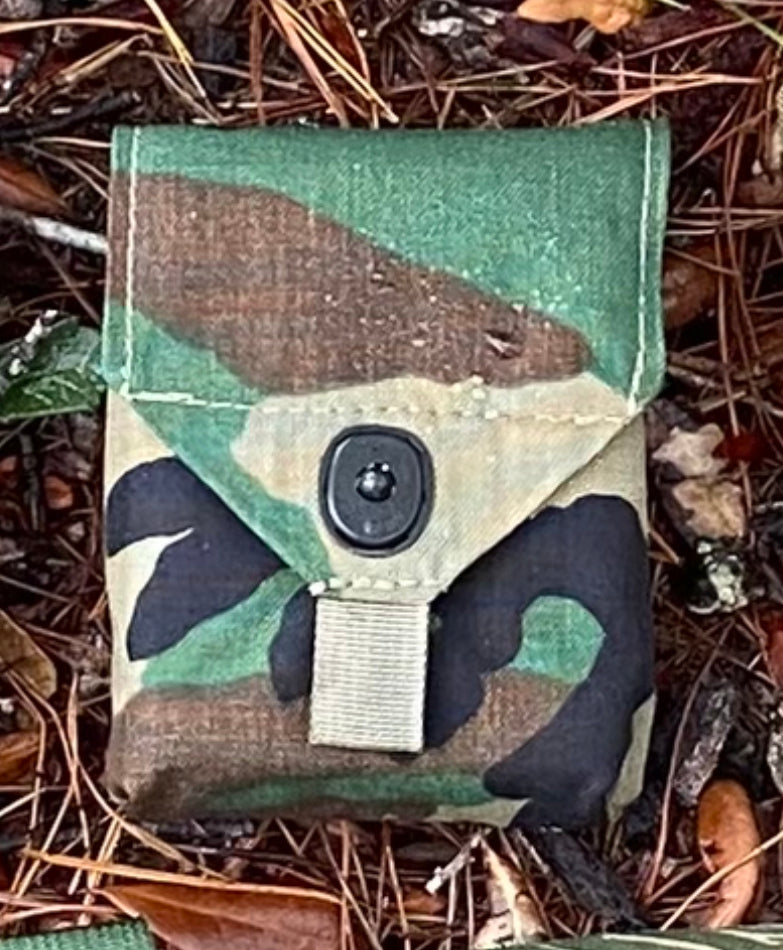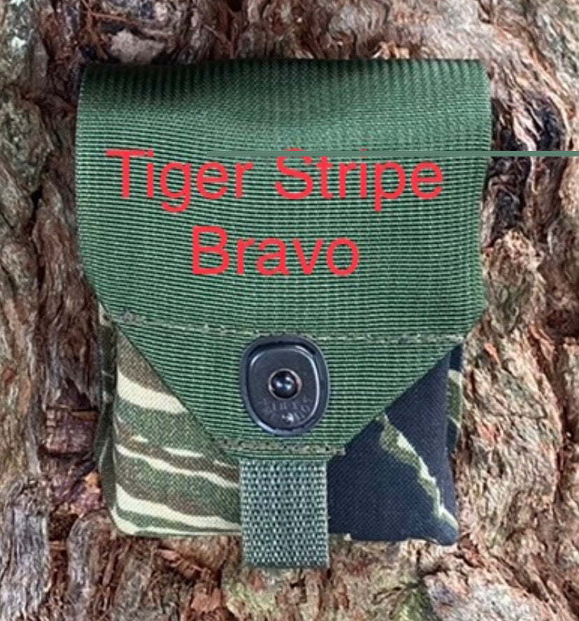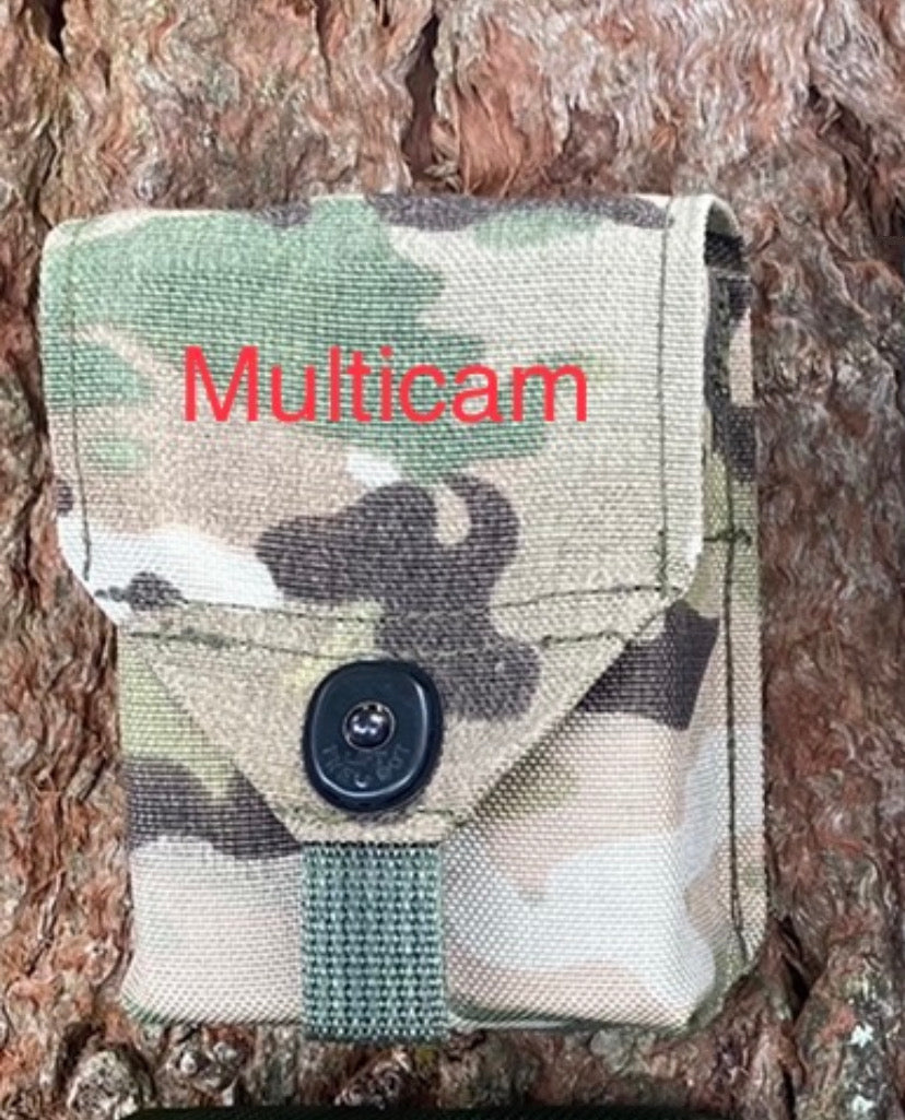 Fantastic upgrade to the old ALICE style “compass pouch." A bit bigger and more capable. Very handy! Our compass pouch is designed to hold more than just a compass. It will hold compass, small signal mirror, emergency whistle, fresnel lens, and fire starter (matches or Bic or similar). Now with laser cut Hypalon back panel. Designed to attach to pack shoulder strap with strips of double-sided hook & loop (included). Can also use MOLLE attachments such as MOLLE Sticks, MALICE Clips, etc. (Note: These are NOT INCLUDED). Made in U.S.A. with 1000D Cordura nylon (Multicam, Woodland, Green, and Coyote Brown) and 500D Cordura nylon (Vietnam Tiger Stripe). Internal dimensions: 3" wide x 4" tall x 1.5" front-to-back. Lift-The-Dot snap. Attach with included 1/2" or 3/4" or 1" double-sided hook and loop - VELCRO® Brand ONE-WRAP or similar (included) or MALICE Clips or MOLLE Sticks or similar (not included).
