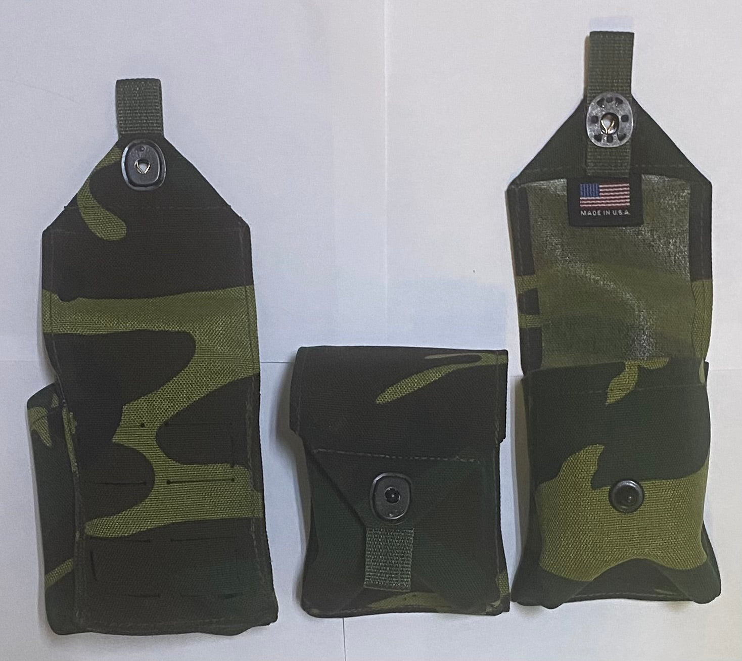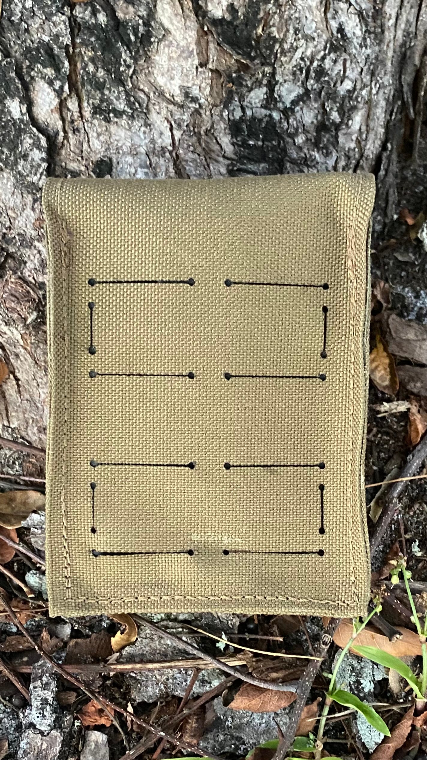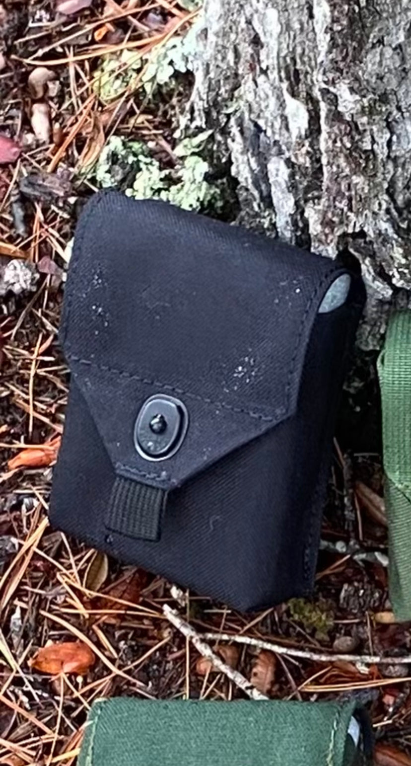 Fantastic upgrade to the old ALICE style “compass pouch." A bit bigger and more capable. Very handy! Our compass pouch is designed to hold more than just a compass. It will hold compass, small signal mirror, emergency whistle, fresnel lens, and fire starter (matches or Bic or similar). Now with laser cut Hypalon back panel. Designed to attach to pack shoulder strap with strips of double-sided hook & loop (included). Can also use MOLLE attachments such as MOLLE Sticks, MALICE Clips, etc. (Note: These are NOT INCLUDED). Made in U.S.A. with 1000D Cordura nylon (Multicam, Woodland, Green, and Coyote Brown) and 500D Cordura nylon (Vietnam Tiger Stripe). Internal dimensions: 3" wide x 4" tall x 1.5" front-to-back. Lift-The-Dot snap. Attach with included 1/2" or 3/4" or 1" double-sided hook and loop - VELCRO® Brand ONE-WRAP or similar (included) or MALICE Clips or MOLLE Sticks or similar (not included).
